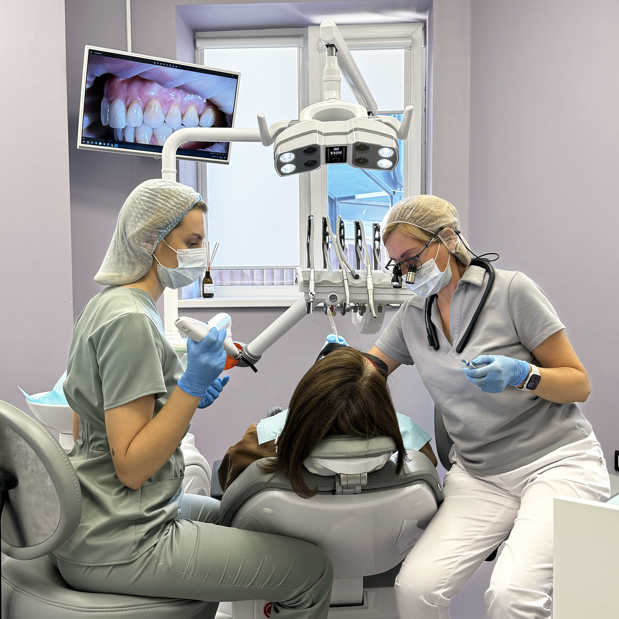 Некоторые случаи требуют работы в несколько этапов, и доктор разрабатывает план лечения, с которым знакомит пациента на старте. Некоторые – командной работы стоматологов разных специализаций, и у нас все нужные профессионалы есть. Так же есть челюстно-лицевой хирург имплантолог.